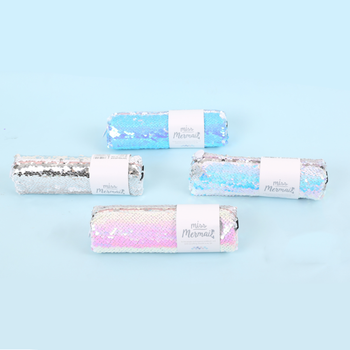 Elegante estuche de lápices triangular de la serie Mermaid con cubierta de escala brillante Bolsa de lápices elegante de moda